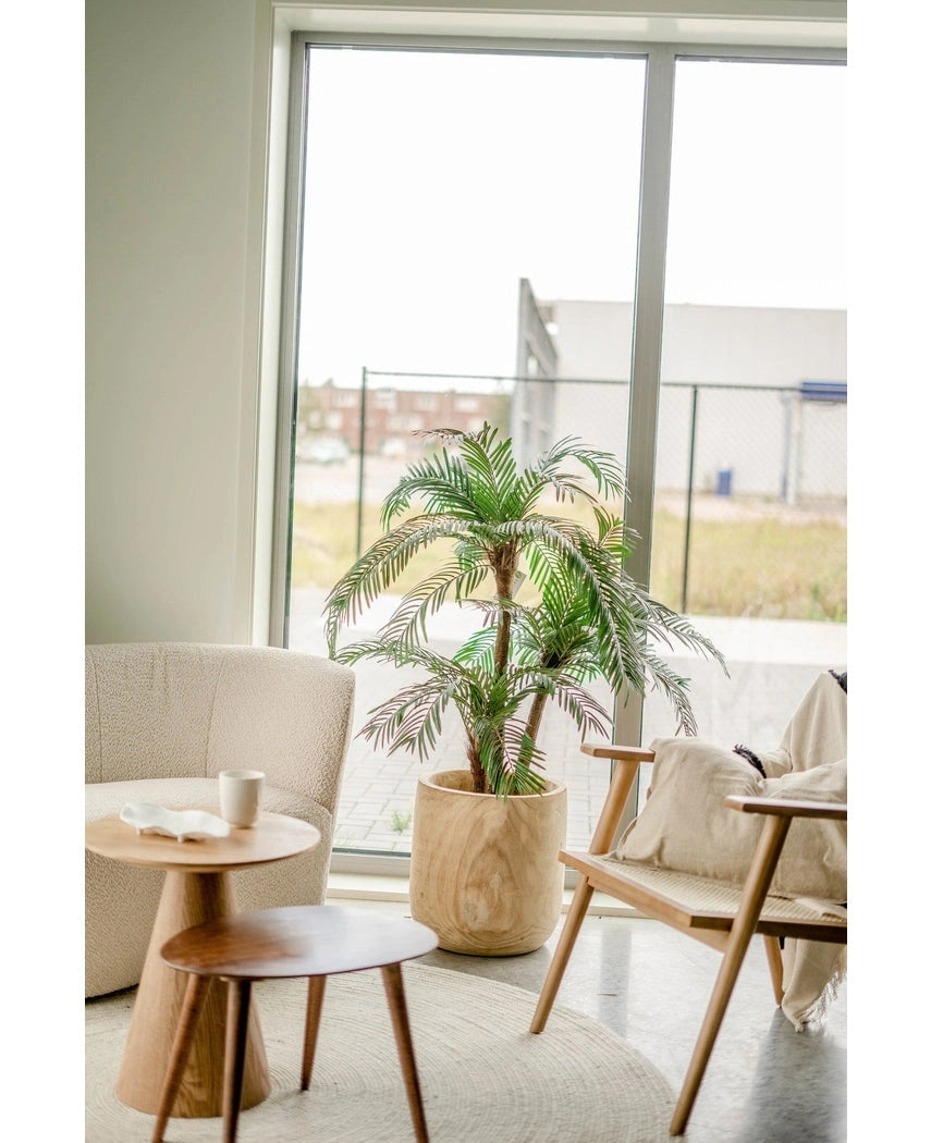De Cycas palm behoort tot de palmenfamilie. De Cycas kunstpalm heeft welgevormde donker en lichtgroene palmtakken en is opgebouwd met een aantal echte houten stammen. De kwaliteit van de palm is van prima kwaliteit voor binnenshuis. Voor een majestueuze look plaatst u de Cycas palm in een decoratieve plantenbak. Is dit toch niet de palm die u zoekt? Wij hebben nog veel meer kunstpalmen