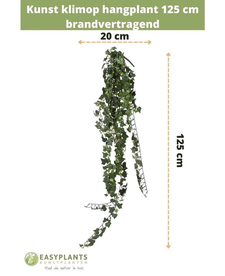 Voor een klein beetje gezelligheid volstaat een kleine plantje en voor een hele waterval aan gezelligheid volstaat deze gave kunst klimop hangplant. Ideaal om een restaurant, winkel of gewoon uw woonkamer thuis extra gezellig te maken. De kunst klimop hangplant is 125 cm. lang en bestaat uit verschillende strengen met blaadjes. Doordat gewerkt is met blaadjes van verschillende groottes en in verschillende tinten groen heeft de kunstplant een mooie, natuurgetrouwe uitstraling. Bevestig eenvoudig in een sierpot met steekschuim. Doordat het kunststof is voorzien van een speciale brandvertragende coating is deze blikvanger ook nog eens een hele veilige keuze. Kortom, tijd...