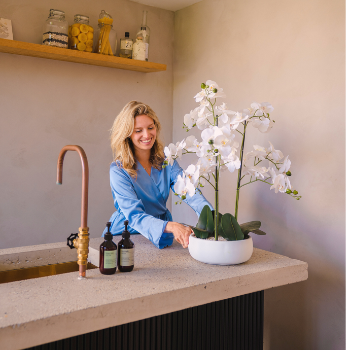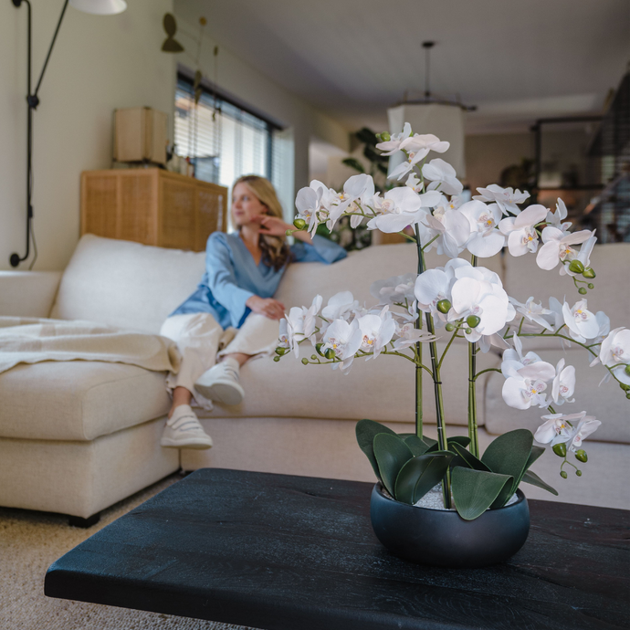 Kunst orchideeën vergen doorgaans weinig tot geen onderhoud. Met een zachte borstel of een vochtige doek af en toe afnemen is meestal voldoende om ze fris en mooi te houden.
