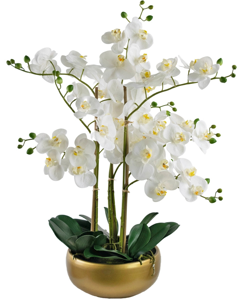Kunst Orchidee Real Touch 50 cm wit in pot goud