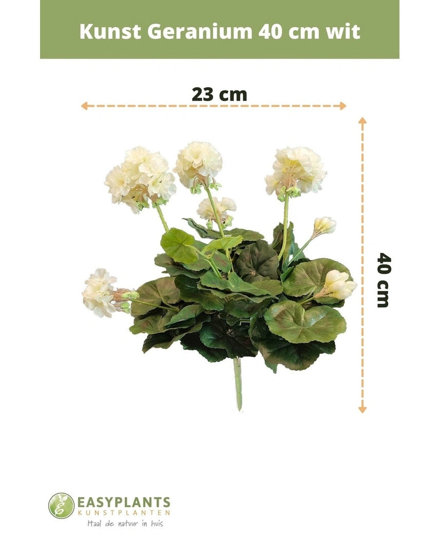 In de collectie van Easyplants vindt u een aantal mooie kunstbloemen, zoals bijvoorbeeld deze Kunstbloem Geranium Wit. Ideaal om uw interieur mee op te fleuren. De Nederlandse natuur kent vele soorten en kleuren Geraniums die zowel buiten in de tuin als binnen in een pot te vinden zijn. En als uw vingers niet bepaald groen zijn, is deze kunst Geranium van 40 cm. hoog een goede aankoop. Zet de groene kunstplant met witte kunstbloemen in een mooie sierpot en daarna hoeft u niets meer te doen. De kunstbloem staat leuk in zowel een woon- als...