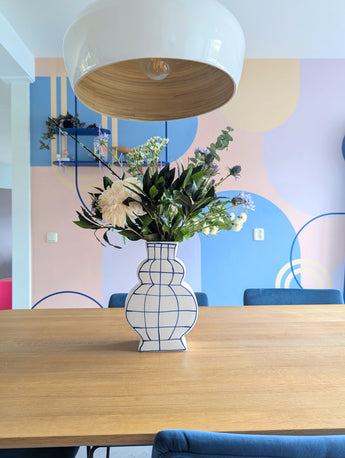 Dompel jezelf onder in de verfijnde schoonheid van Petal Poetry, een betoverend zijden bloemenboeket dat de delicate pracht van de natuur weerspiegelt. Met een harmonie van koele tinten en een zorgvuldig samengestelde bloemenselectie, brengt dit arrangement een vleugje sereniteit en verfijning in elke ruimte.