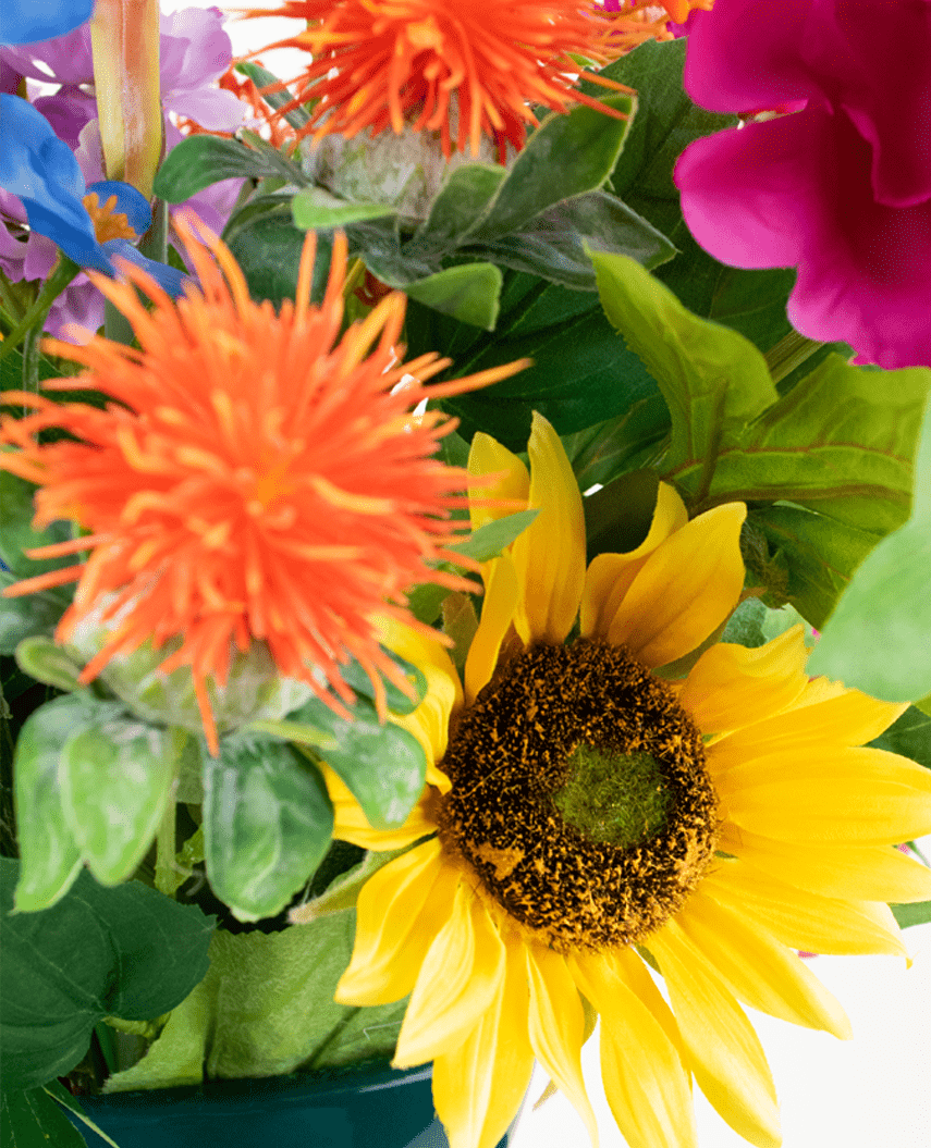 Een levendig kunstbloemenboeket dat barst van kleur en karakter!