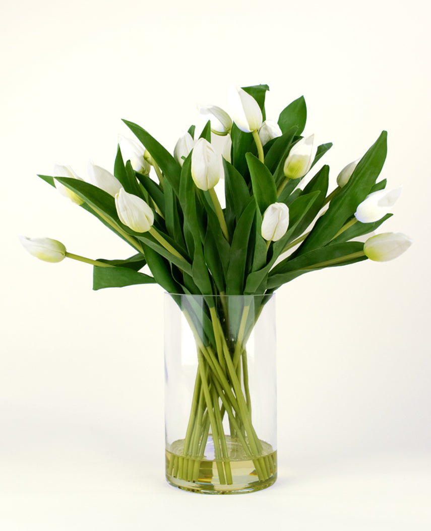Zijden kunstboeket Tulpen in vaas Wit