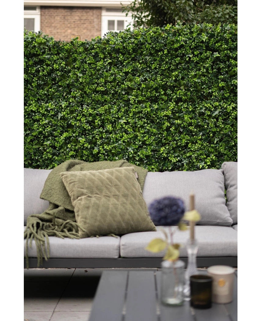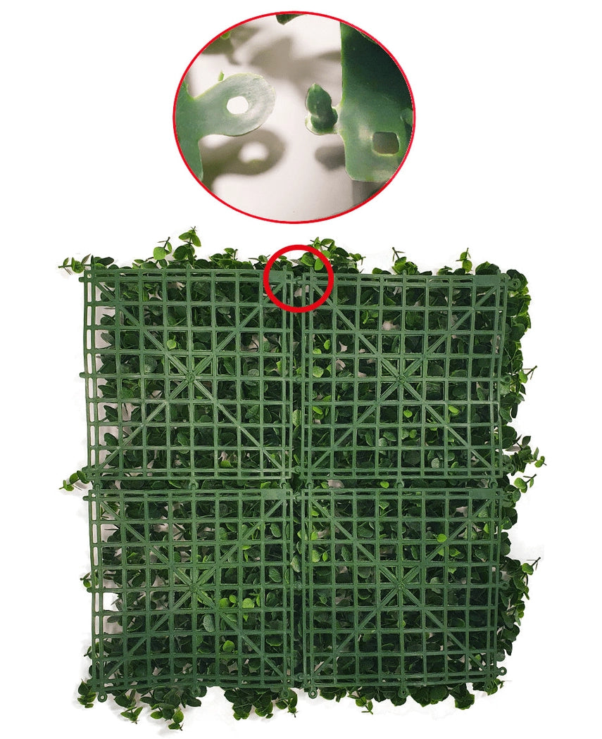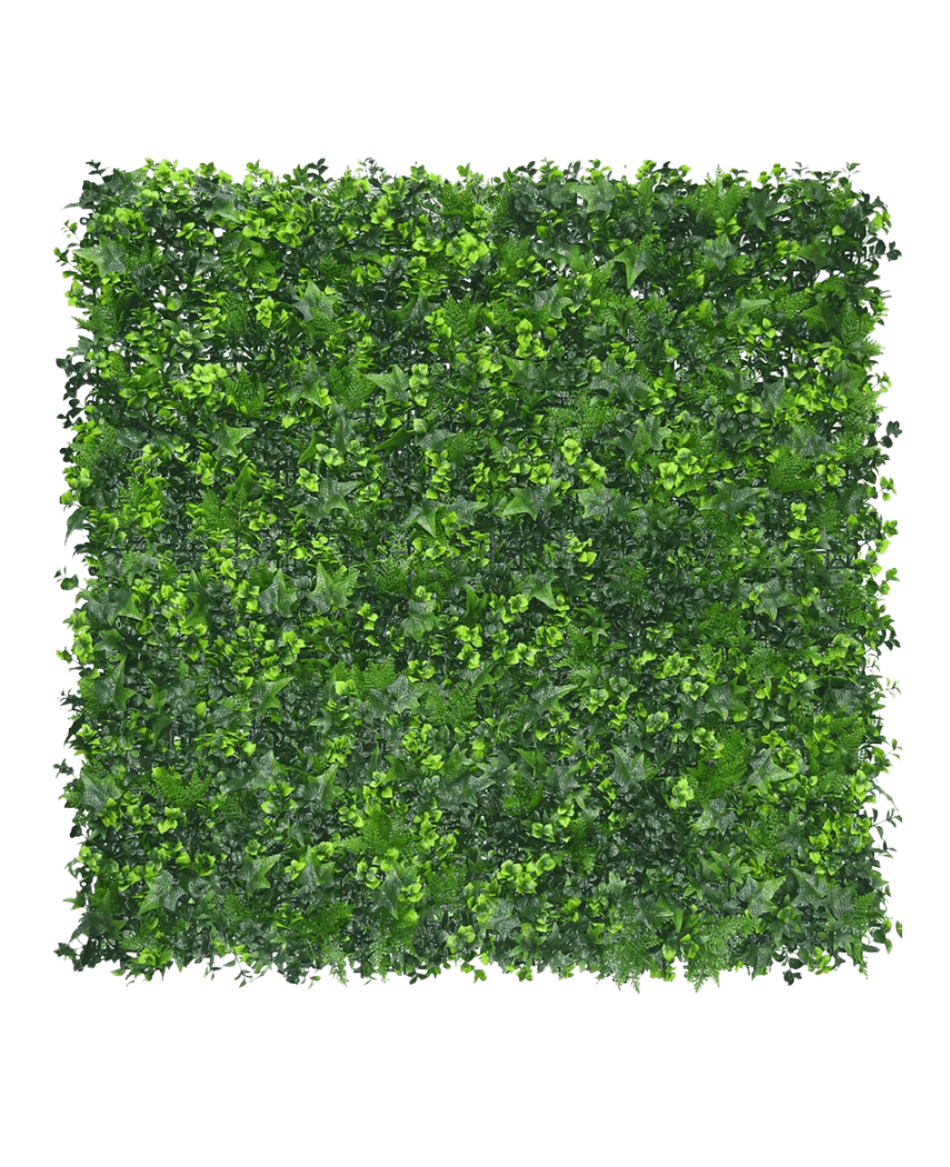 Tover een kale binnenmuur om in een prachtige greenwall of maak van een open hekwerk een fraaie kunsthaag. Het kan heel eenvoudig met deze kunsthaag mat mix met kunststof klimop-, buxus en varenblaadjes. Alle blaadjes zijn diepgroen, uv-bestendig en opgewassen tegen alle weersomstandigheden. Meerdere matten zijn eenvoudig aan elkaar te koppelen met een speciaal kliksysteem. De kunsthaag mat is goed op maat en in vorm te knippen met een gewone keukenschaar. De kunsthaag elementen kunt u vastmaken met bijvoorbeeld ijzerdraad of ty-raps. Een erg leuke manier om een tuin, woonkamer, receptieruimte, dierenverblijf of horecagelegenheid extra uitstraling te geven....