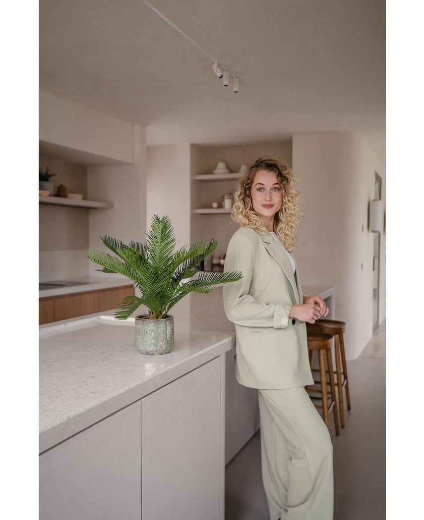 De Kunstpalm Baby Cycus is een prachtig ontworpen kunstplant die zowel charme als een exotisch tintje aan het interieur toevoegt. Deze levensechte kunstpalm heeft een authentieke uitstraling en is een perfecte keuze voor diegenen die op zoek zijn naar een onderhoudsvrije, groene toevoeging aan hun leefruimte. Met zijn compacte afmetingen van 45 cm hoog, is de Kunstpalm Baby Cycus ideaal voor kleinere ruimtes zoals appartementen, studio's en kantoren. Hij past gemakkelijk op een vensterbank, bureau of boekenplank, waardoor je zelfs in de kleinste ruimtes kunt genieten van een vleugje...