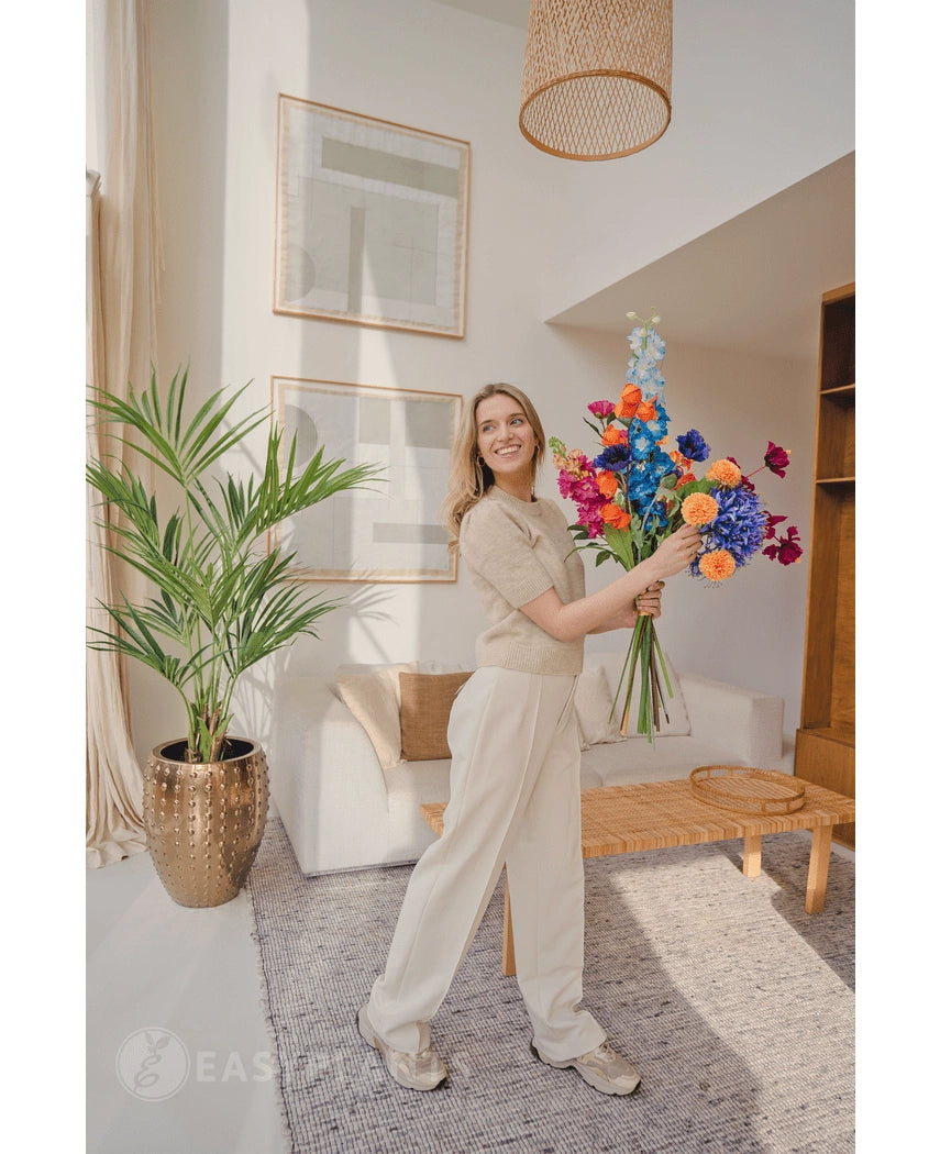 Ga voor een aangename tropische sfeer met de schitterende Kunstpalm Kentia. De Kentiapalm is in de wetenschappelijke wereld bekend onder de naam Howea Forsteriana. Prachtig nietwaar? Mag u snel weer vergeten. Wat u vast niet vergeet is de fraaie tropische look van deze palmsoort. Niet voor niets hebben we deze Kunst Kentiapalm toegevoegd aan onze uitgebreide collectie. De kunstpalm van 1.35 m. hoog is gemaakt van kunststof, bijzonder stevig en bovendien kleurvast. Handig, want zo geniet u zo lang mogelijk van de groene kunstplant. Een erg leuke blikvanger in zowel een woon- als werkomgeving.