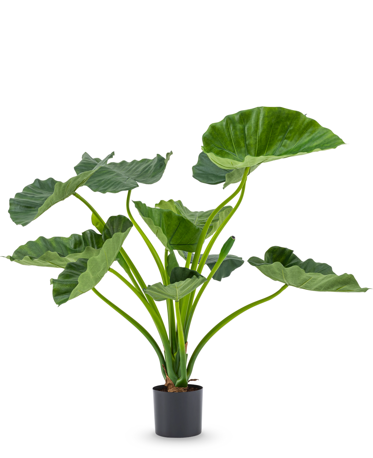 De Kunstplant Alocasia Calioora is een prachtige en levensechte kunstplant die direct sfeer geeft aan elk interieur. Deze kunstplant is gemaakt van hoogwaardige materialen waardoor hij er niet alleen realistisch uitziet, maar ook aanvoelt als een echte plant. Het enige wat je hoeft te doen is af en toe het stof van de bladeren af te vegen en de plant op een nieuwe plek te zetten als je een verandering in je interieur wilt maken.