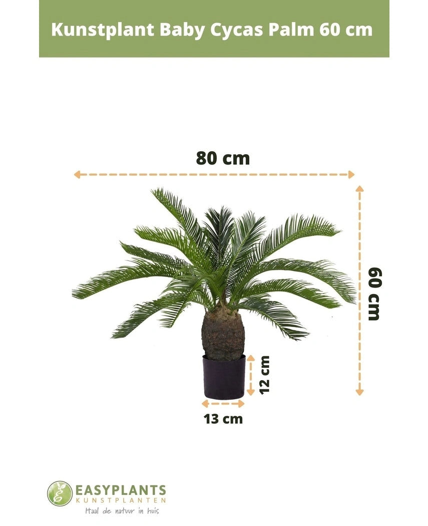 Met deze Cycas palm kunstplant haalt u exotische sferen binnenshuis. De baby Cycas palm heeft een volle bos met groene palmbladeren. Deze baby Cycas palm staat erg elegant in een lage pot.