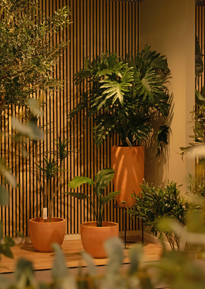 Onze kunstplanten zijn haast niet van echt te onderscheiden. We gebruiken hoogwaardige polyester, terwijl de stammen van echt hout zijn, wat zorgt voor een zeer natuurlijke uitstraling. Twijfel je toch nog over de kwaliteit? Bezoek dan gerust onze showroom om ze zelf te bekijken!