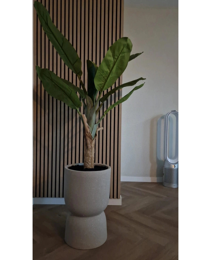 Onze kunstplanten zijn haast niet van echt te onderscheiden. We gebruiken hoogwaardige polyester, terwijl de stammen van echt hout zijn, wat zorgt voor een zeer natuurlijke uitstraling. Twijfel je toch nog over de kwaliteit? Bezoek dan gerust onze showroom om ze zelf te bekijken!