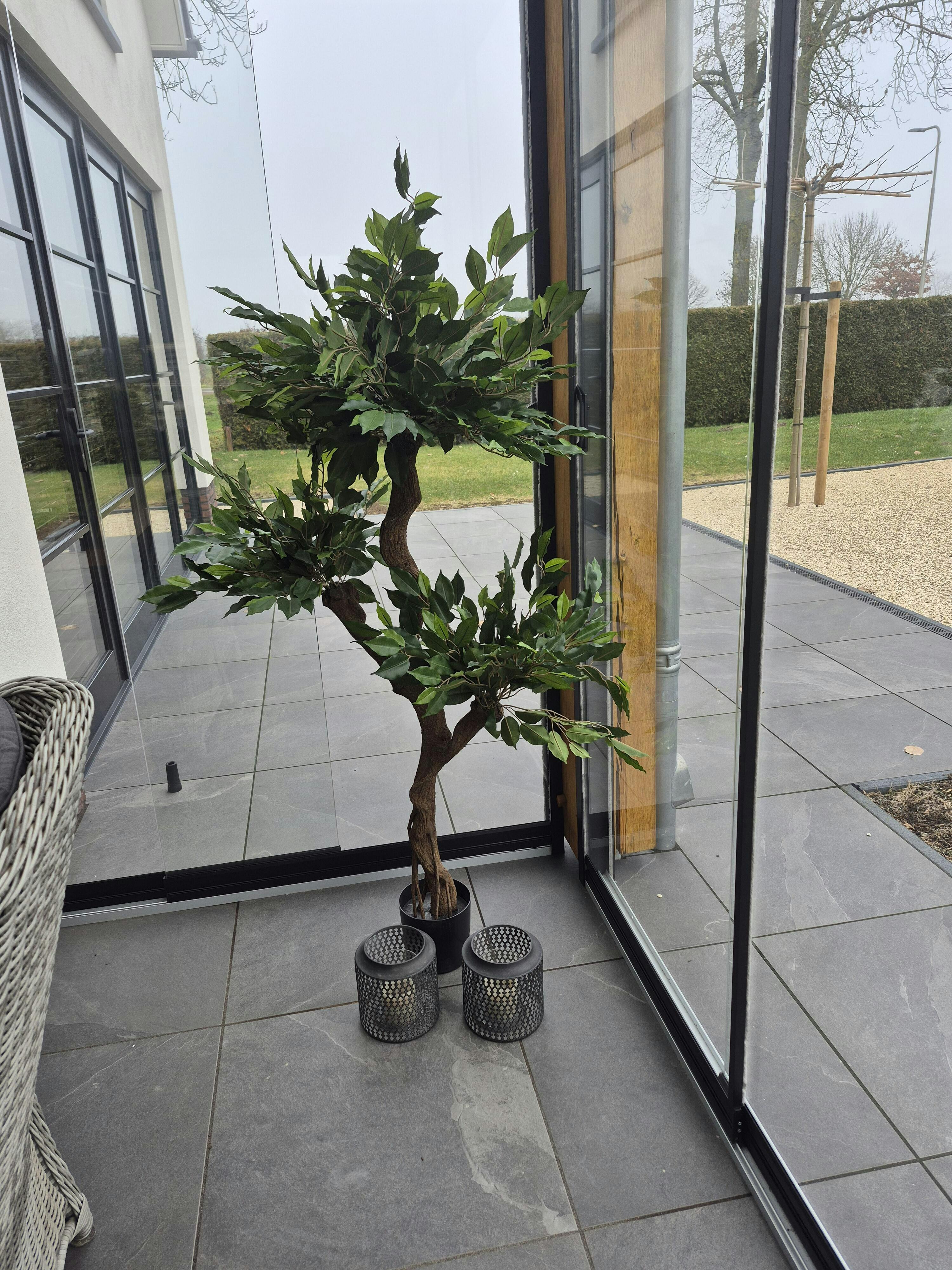 Onze kunstplanten zijn haast niet van echt te onderscheiden. We gebruiken hoogwaardige polyester, terwijl de stammen van echt hout zijn, wat zorgt voor een zeer natuurlijke uitstraling. Twijfel je toch nog over de kwaliteit? Bezoek dan gerust onze showroom om ze zelf te bekijken!