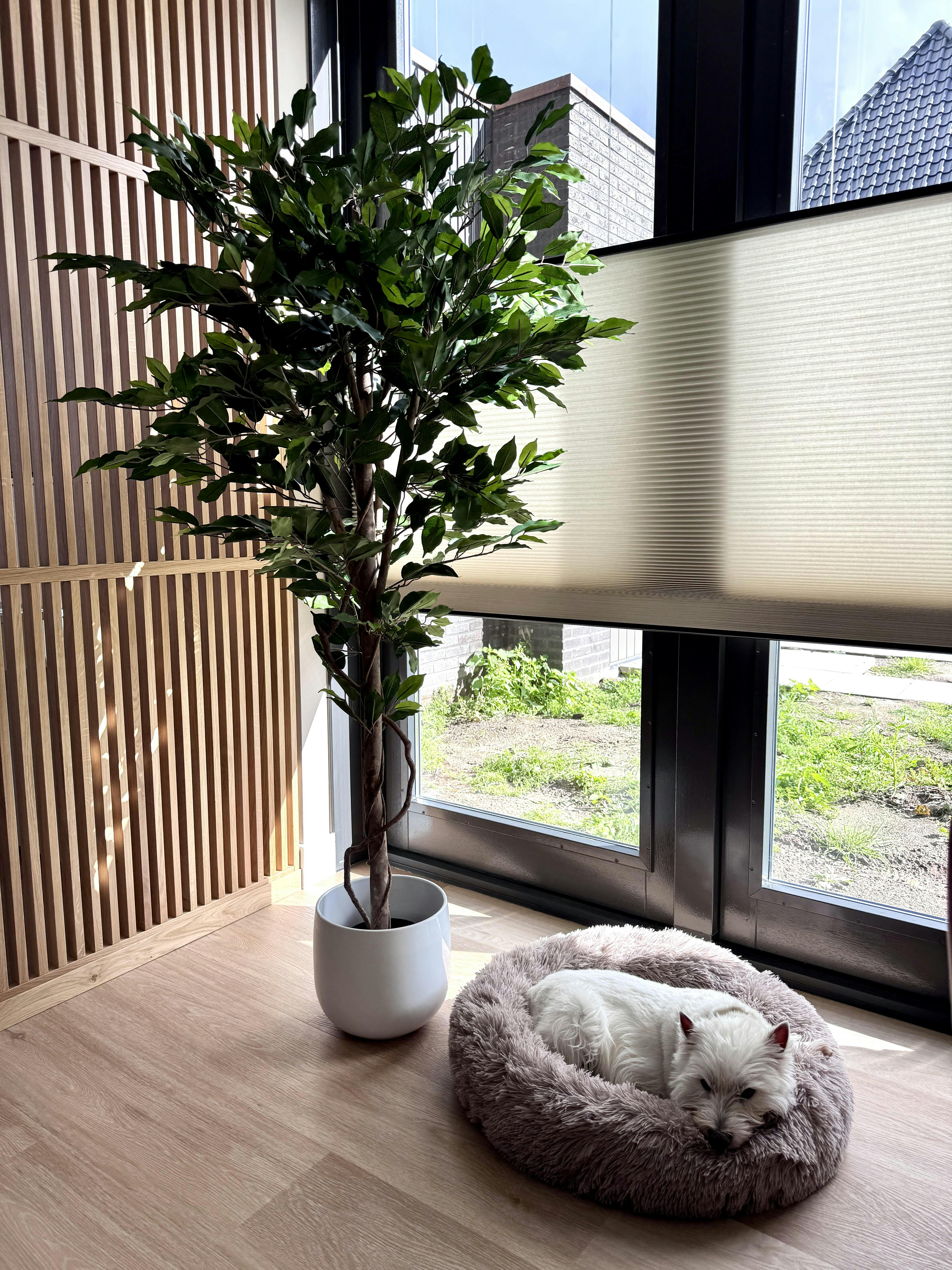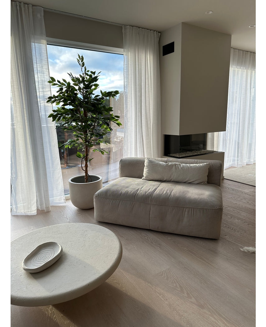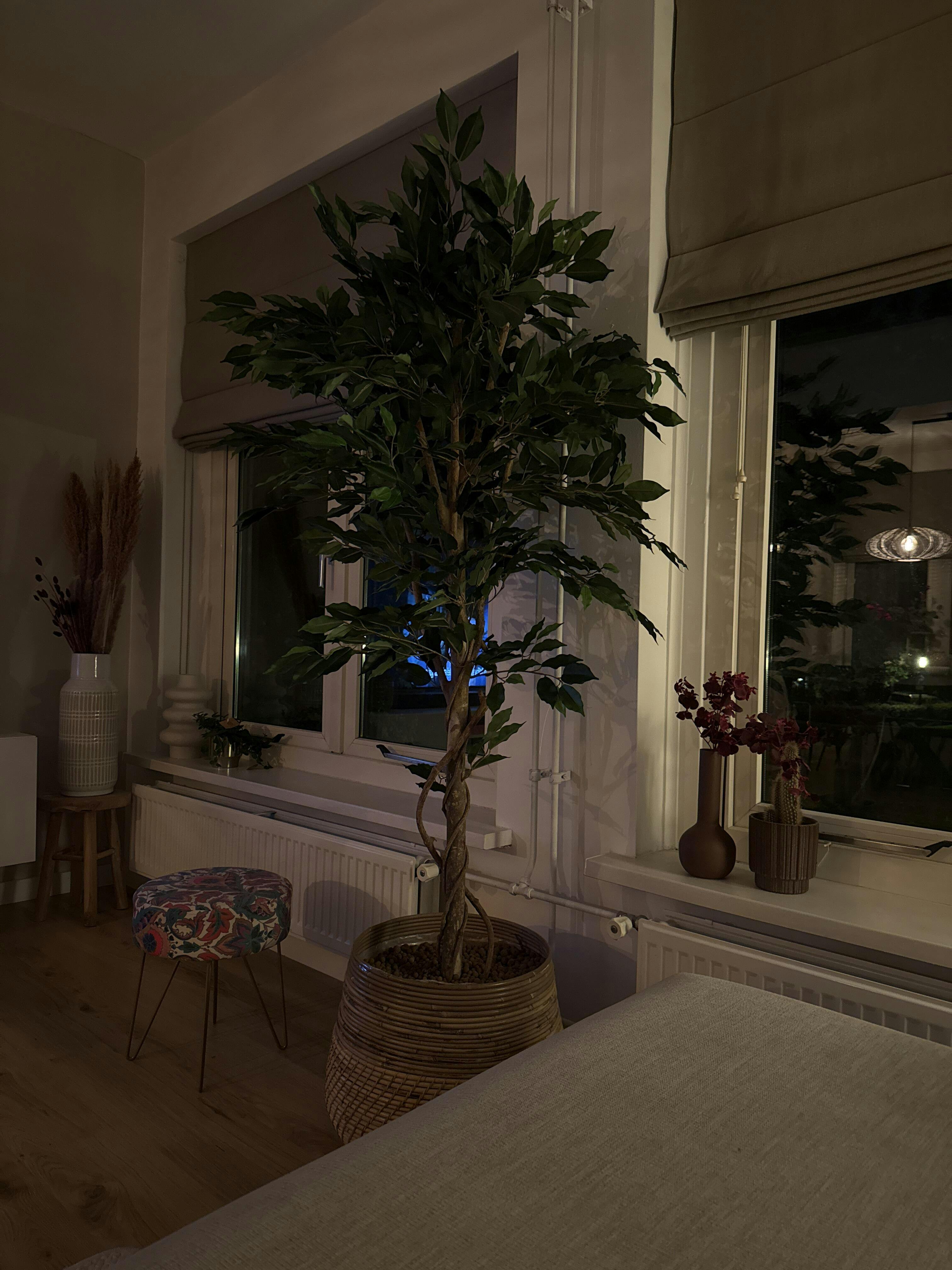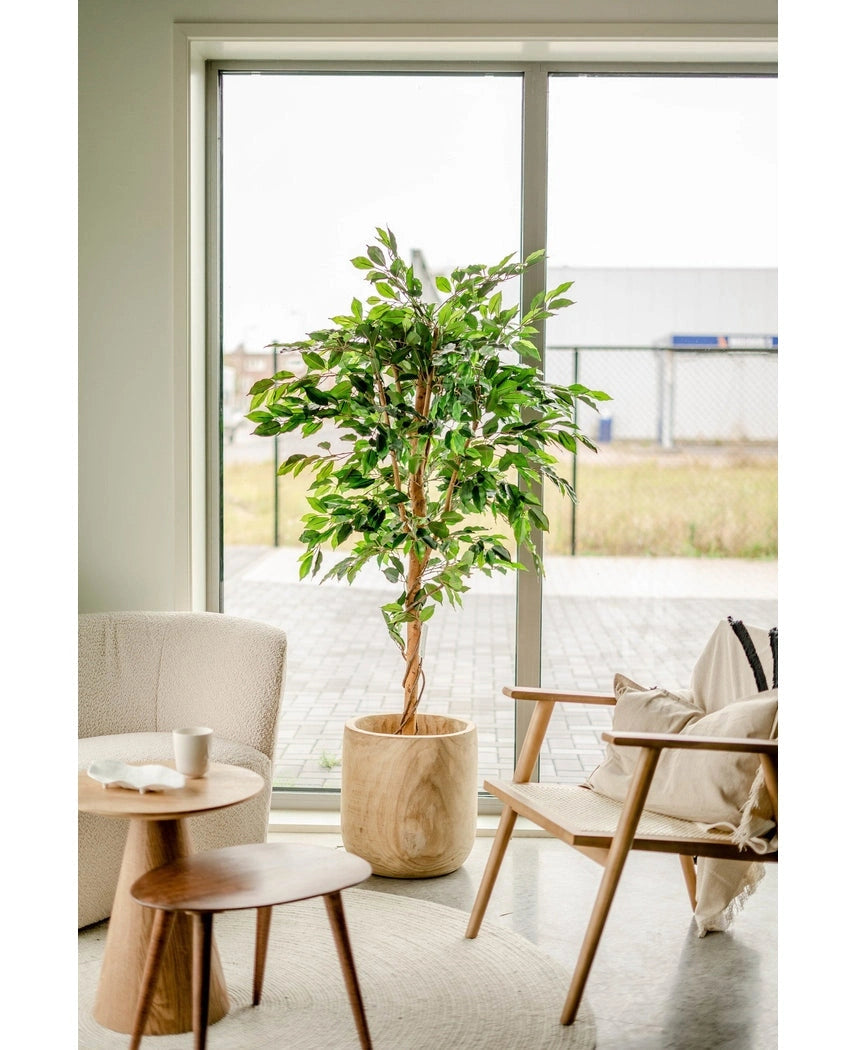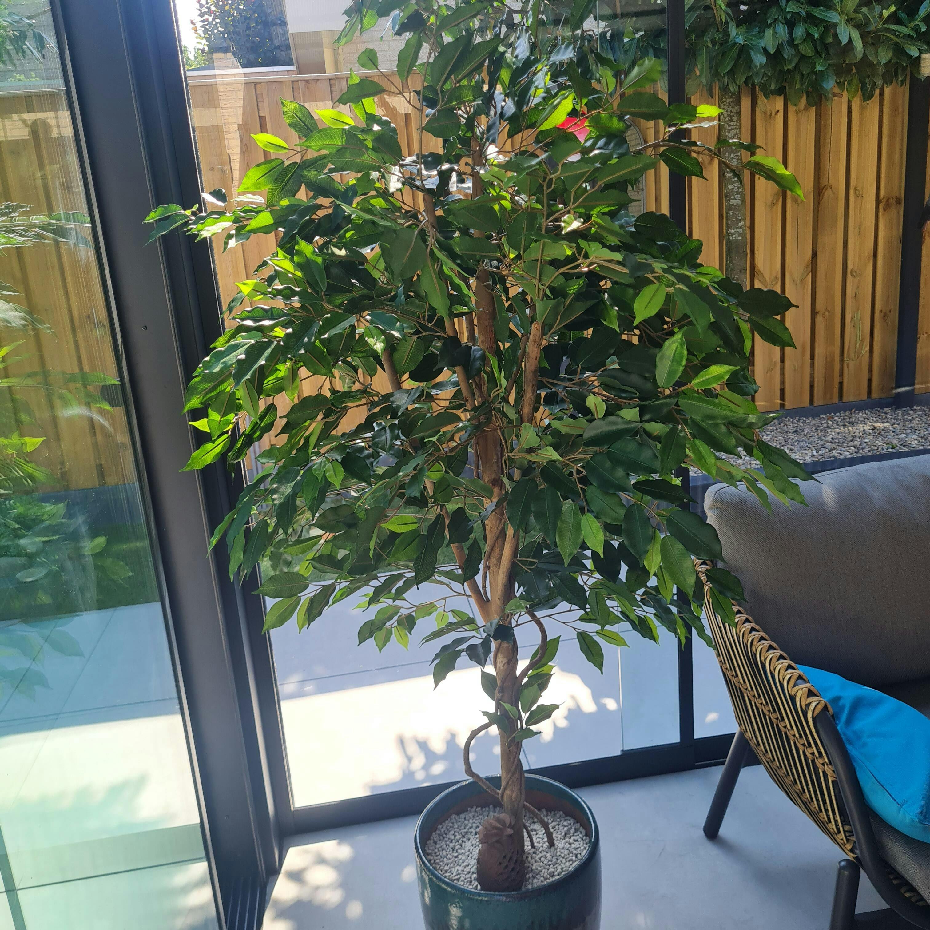 Onze kunstplanten zijn haast niet van echt te onderscheiden. We gebruiken hoogwaardige polyester, terwijl de stammen van echt hout zijn, wat zorgt voor een zeer natuurlijke uitstraling. Twijfel je toch nog over de kwaliteit? Bezoek dan gerust onze showroom om ze zelf te bekijken!