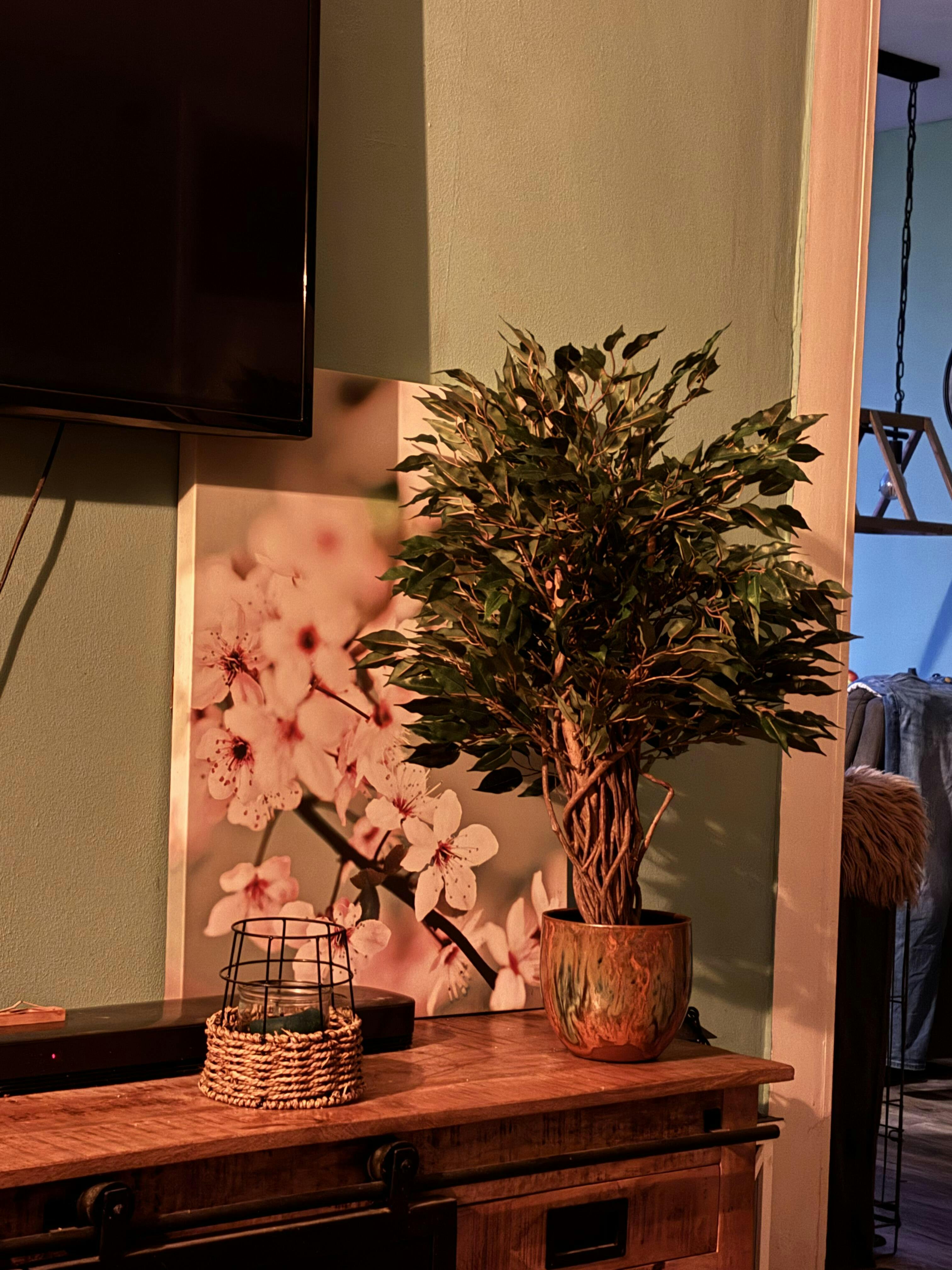 Onze kunstplanten zijn haast niet van echt te onderscheiden. We gebruiken hoogwaardige polyester, terwijl de stammen van echt hout zijn, wat zorgt voor een zeer natuurlijke uitstraling. Twijfel je toch nog over de kwaliteit? Bezoek dan gerust onze showroom om ze zelf te bekijken!