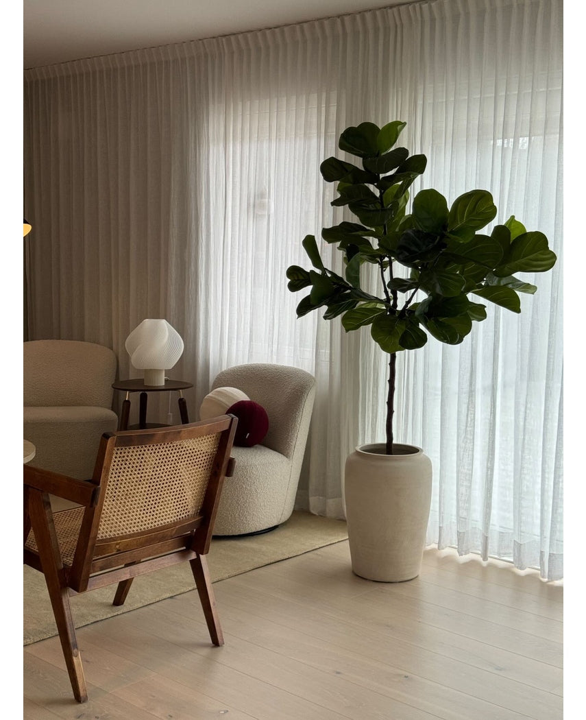 Onze kunstplanten zijn haast niet van echt te onderscheiden. We gebruiken hoogwaardige polyester, terwijl de stammen van echt hout zijn, wat zorgt voor een zeer natuurlijke uitstraling. Twijfel je toch nog over de kwaliteit? Bezoek dan gerust onze showroom om ze zelf te bekijken!