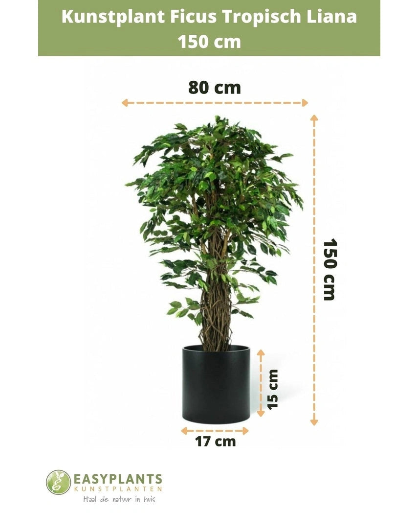 De fat ficus tropical liana is een groene klassieker onder de kunstplanten. De fat ficus tropical liana wordt vaak gebruikt voor op kantoren. Doordat de boom op meerdere echte houten stammen is gebouwd en over zeer veel fijne groene bladeren beschikt, is de plant haast niet van echt...