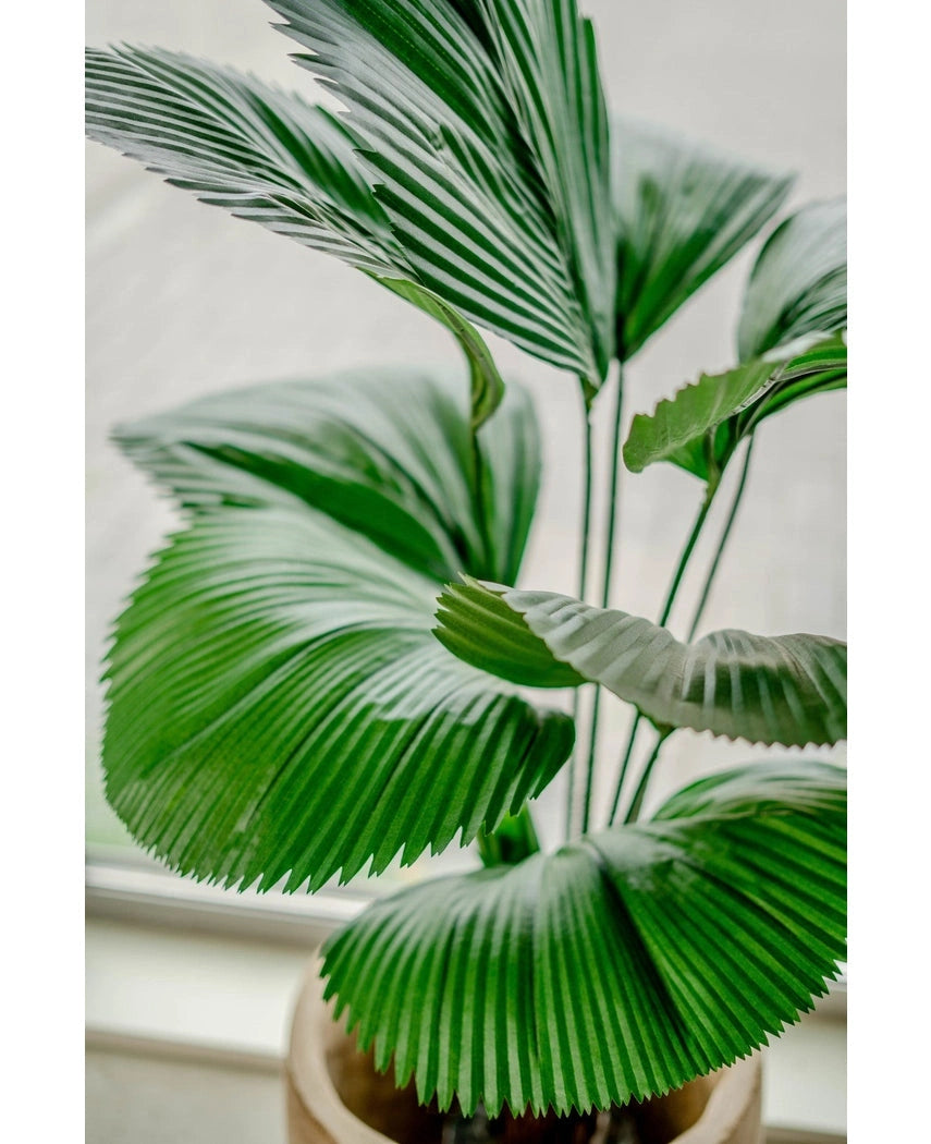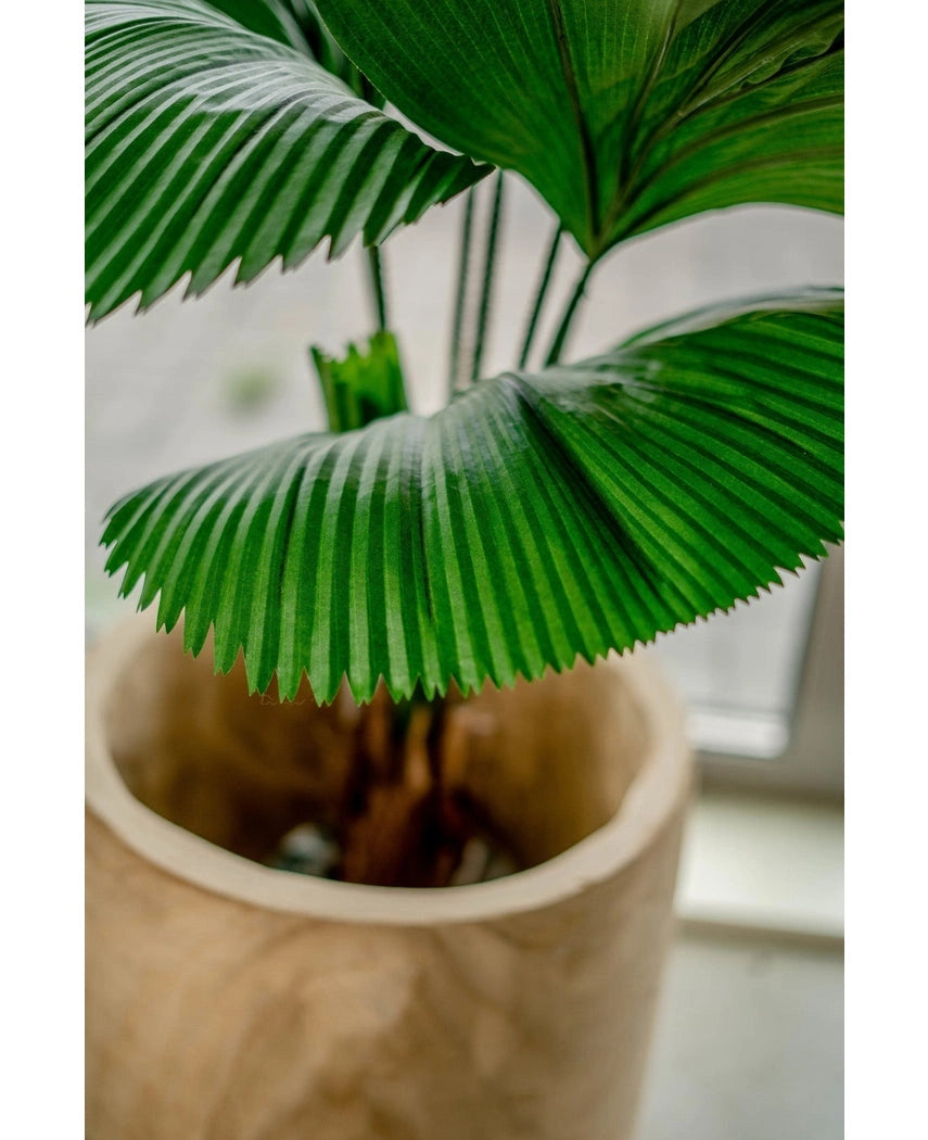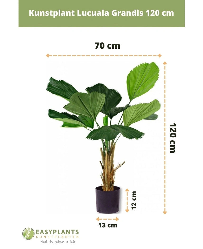 Een subtropisch klimaat creëert u met de Lucuala Grandis. De Lucuala Grandis heeft grote groene palmbladeren die voortkomen uit een natuurlijke echte houten stam. De groene bladeren kenmerken zich door de gekartelde randen die zorgen voor een natuurgetrouwe beleving.