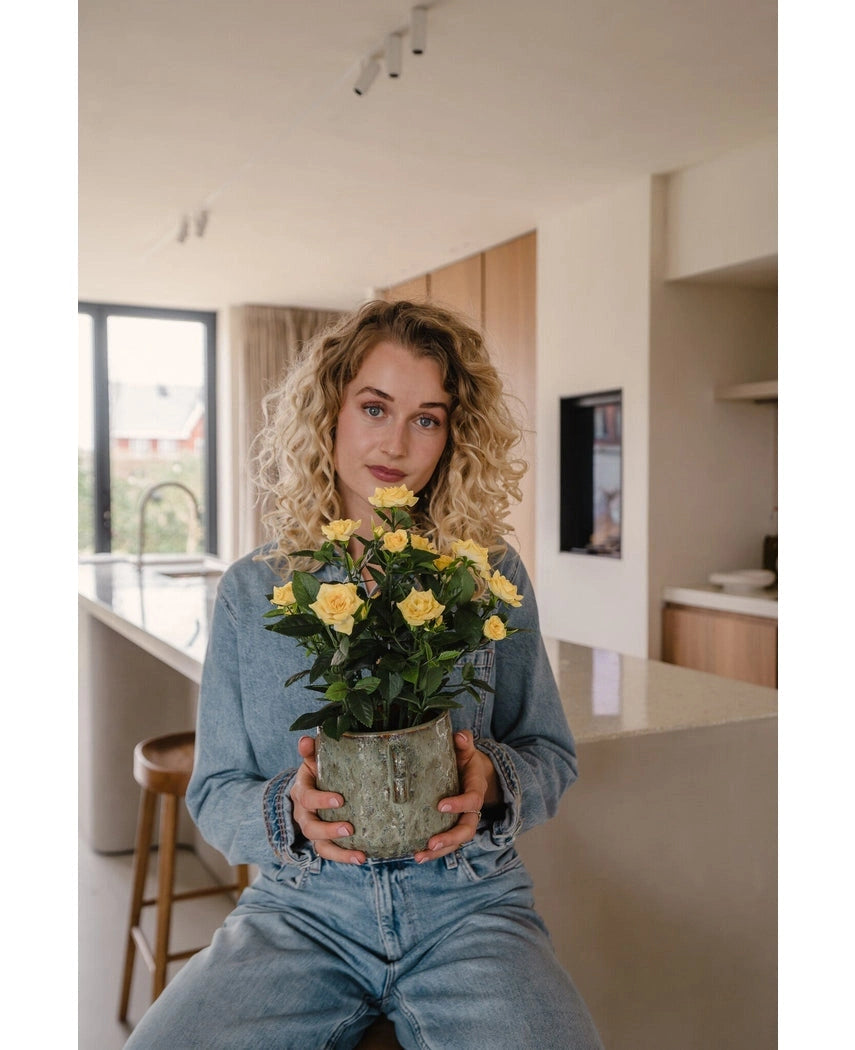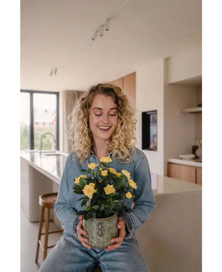 Kunstplant Mini Rose 35 cm geel