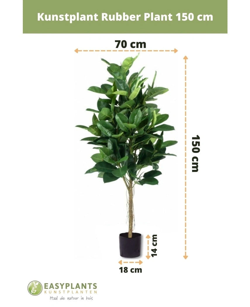 De rubber plant heeft heldere, glanzende en fijne gedetailleerde bladeren die bijdragen aan zijn opvallende verschijning. De rubber plant is gemaakt van een houten stam en de donkergroene bladeren zijn zeer mooi nagemaakt. Hij is leverbaar in diverse hoogtes. Blaas nu een ruimte nieuw leven in en bestel de rubber plant.