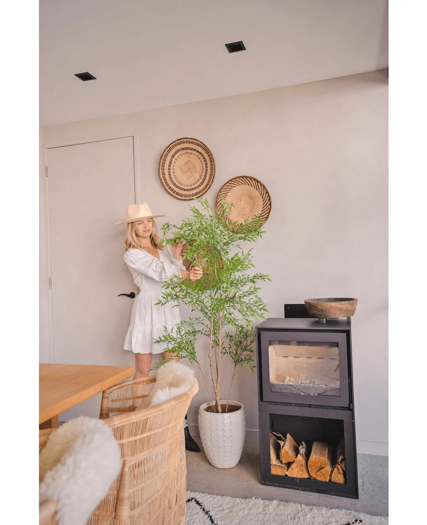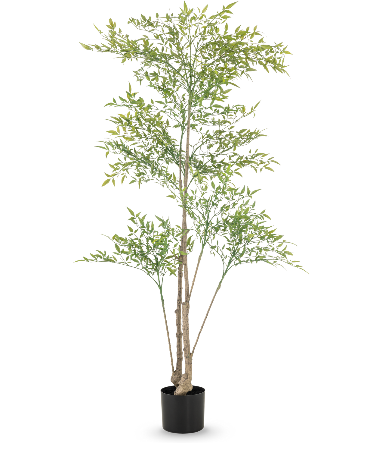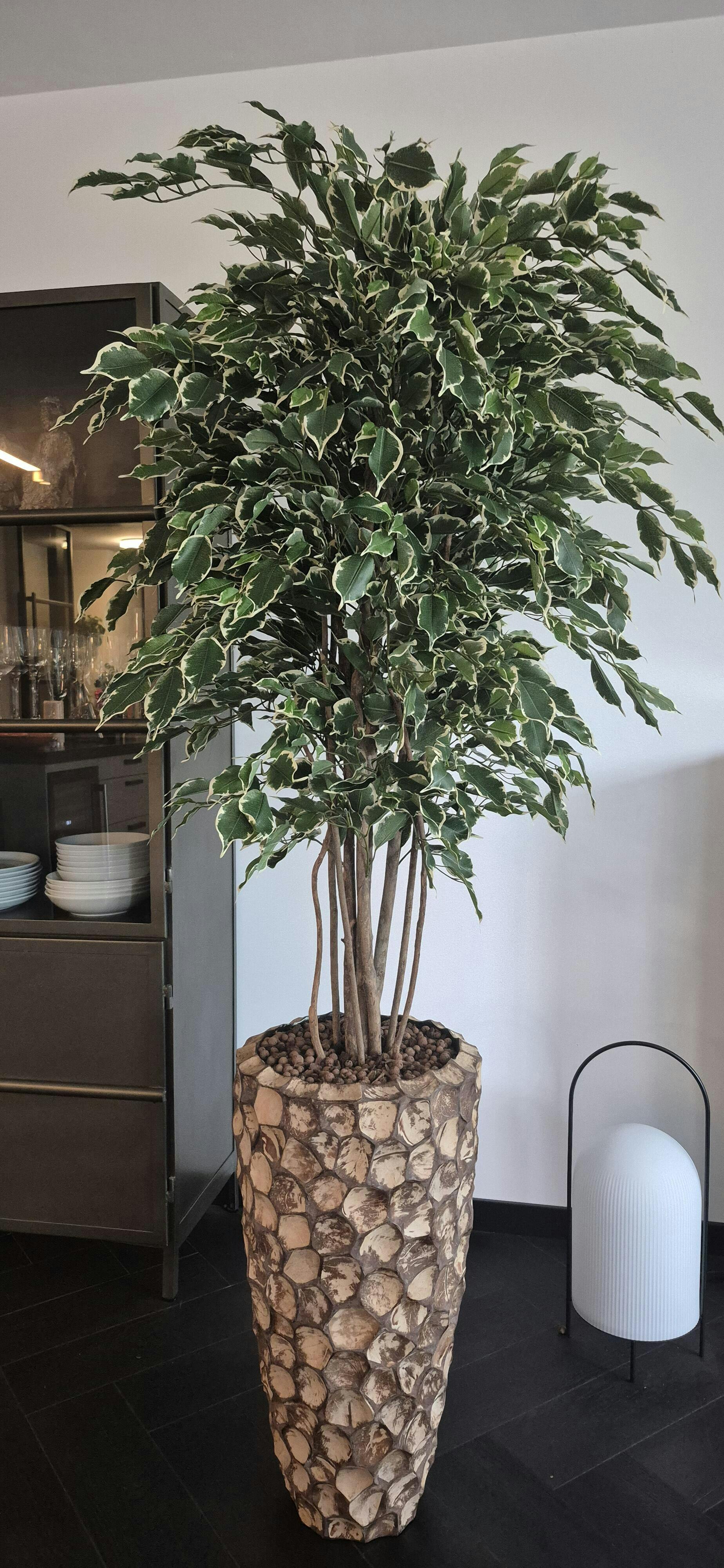 Onze kunstplanten zijn haast niet van echt te onderscheiden. We gebruiken hoogwaardige polyester, terwijl de stammen van echt hout zijn, wat zorgt voor een zeer natuurlijke uitstraling. Twijfel je toch nog over de kwaliteit? Bezoek dan gerust onze showroom om ze zelf te bekijken!