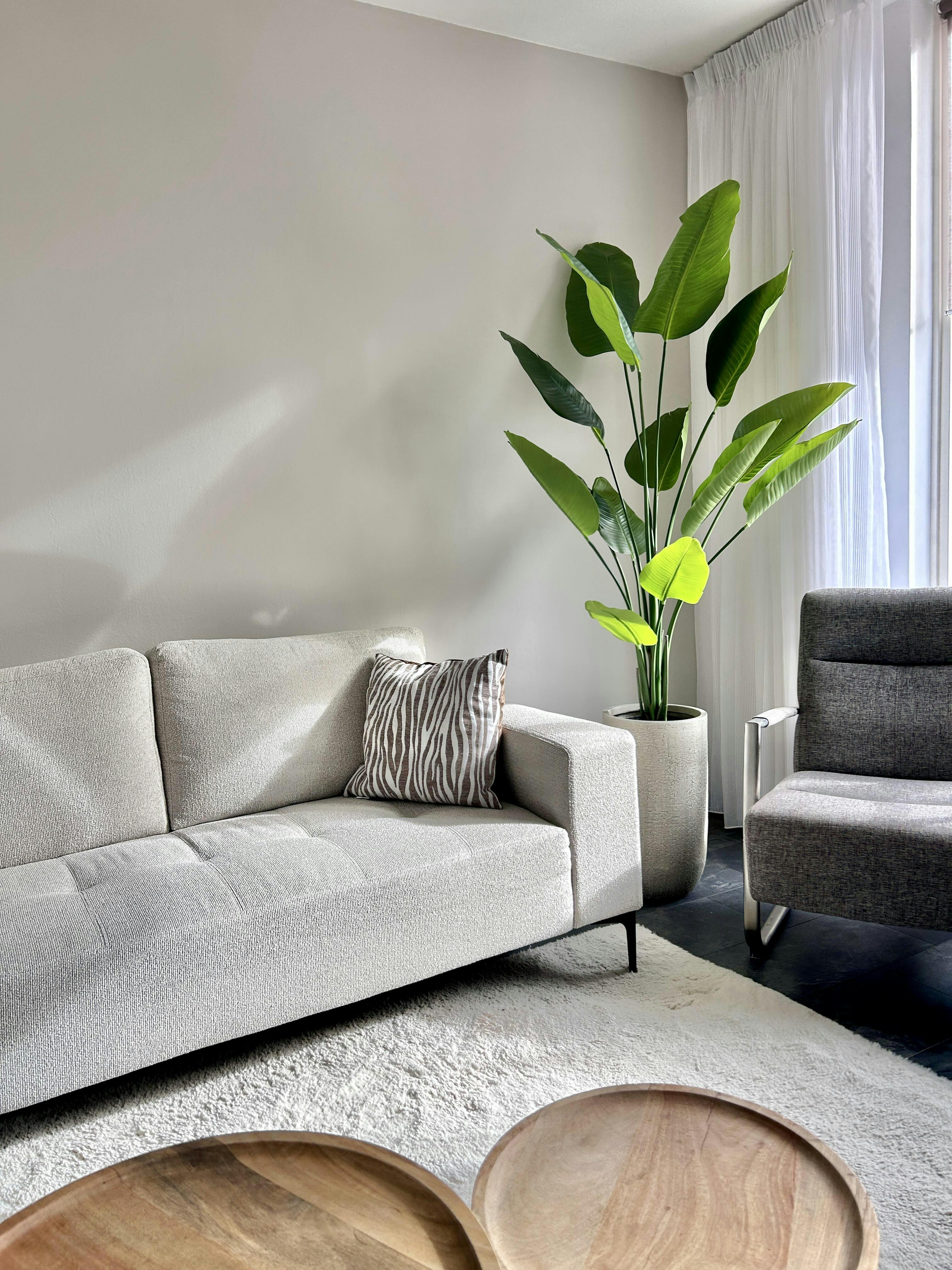 Onze kunstplanten zijn haast niet van echt te onderscheiden. We gebruiken hoogwaardige polyester, terwijl de stammen van echt hout zijn, wat zorgt voor een zeer natuurlijke uitstraling. Twijfel je toch nog over de kwaliteit? Bezoek dan gerust onze showroom om ze zelf te bekijken!