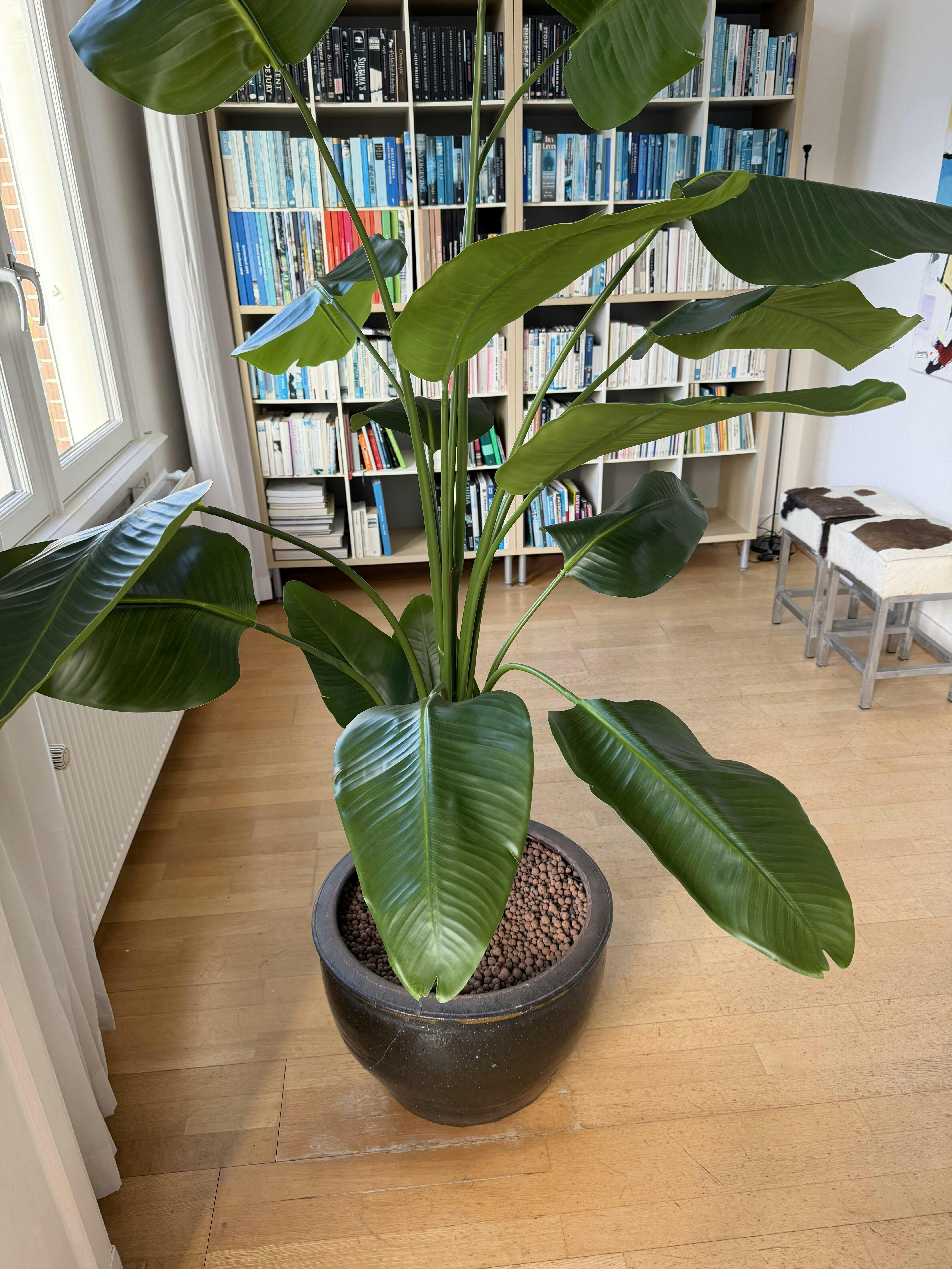 Onze kunstplanten zijn haast niet van echt te onderscheiden. We gebruiken hoogwaardige polyester, terwijl de stammen van echt hout zijn, wat zorgt voor een zeer natuurlijke uitstraling. Twijfel je toch nog over de kwaliteit? Bezoek dan gerust onze showroom om ze zelf te bekijken!