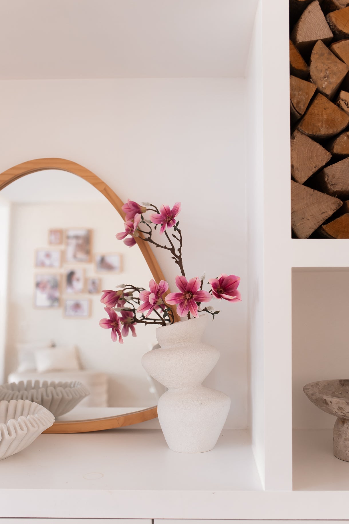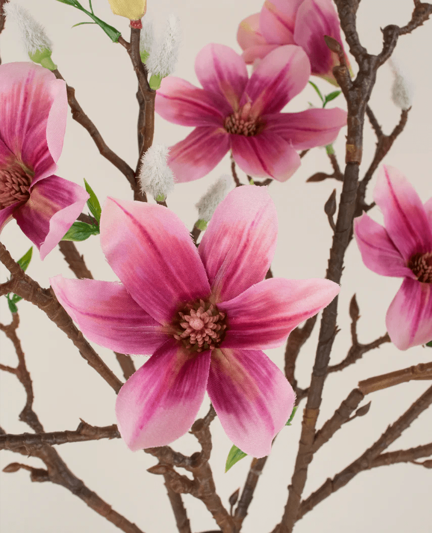 Breng een vleugje verfijnde charme in huis met het zijden kunstbloemen boeket Magnolia Roze, bestaande uit drie elegante stelen. De lichtroze magnoliabloemen – met hun zachte, fluweelachtige bloemblaadjes – stralen rust, zachtheid en tijdloze schoonheid uit. Een subtiele eyecatcher die perfect past bij zowel een klassiek als modern interieur.